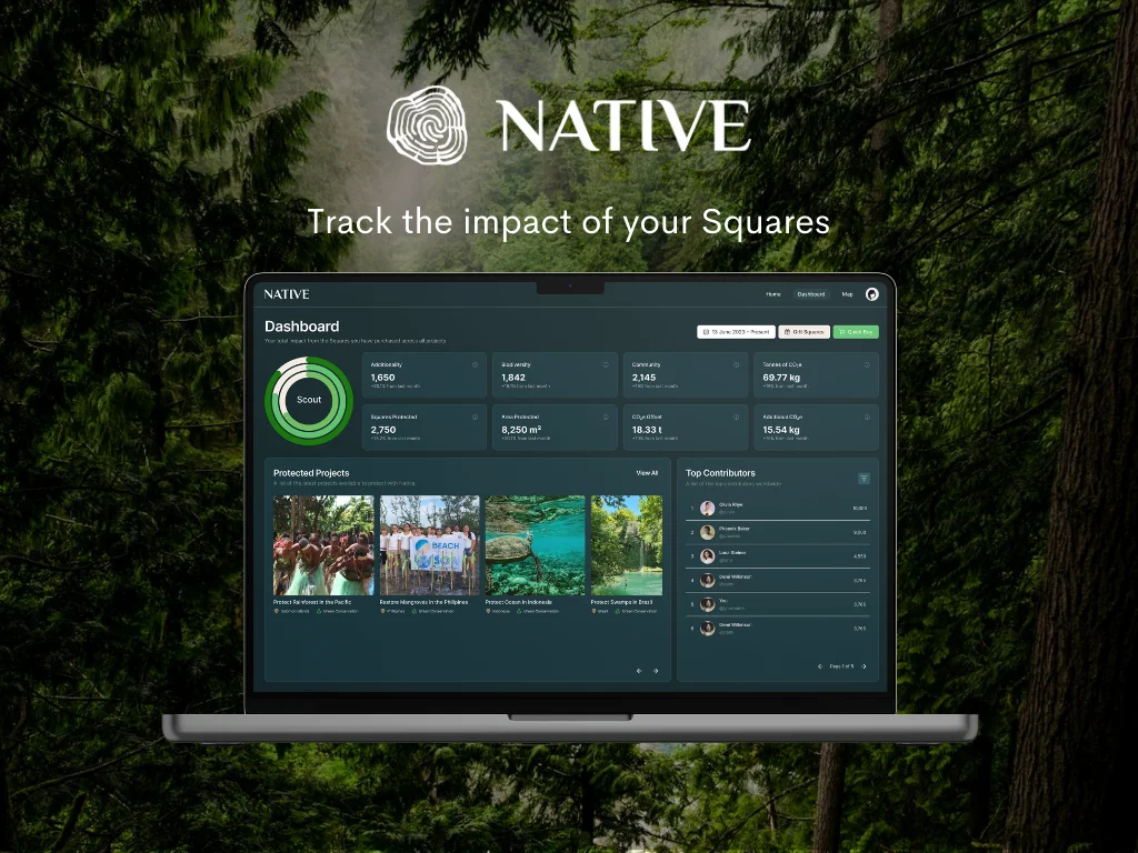 Native Squared helps you protect the planet one Square at a time. Each Native Square is a real 3m² of rainforest, mangrove, or coral reef, secured for 40 years. You can see your Squares on our interactive map and track your impact on carbon, biodiversity, and local communities—making conservation tangible, personal, and lasting.
